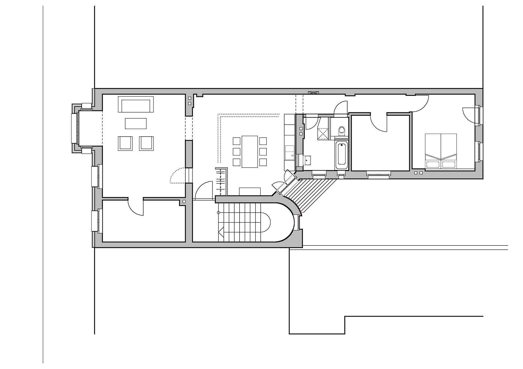 Durch geschickt gesetzte Durchbrüche entstanden großzügige und flexibel nutzbare Grundrisse, die den heutigen Wohnvorstellungen entsprechen.