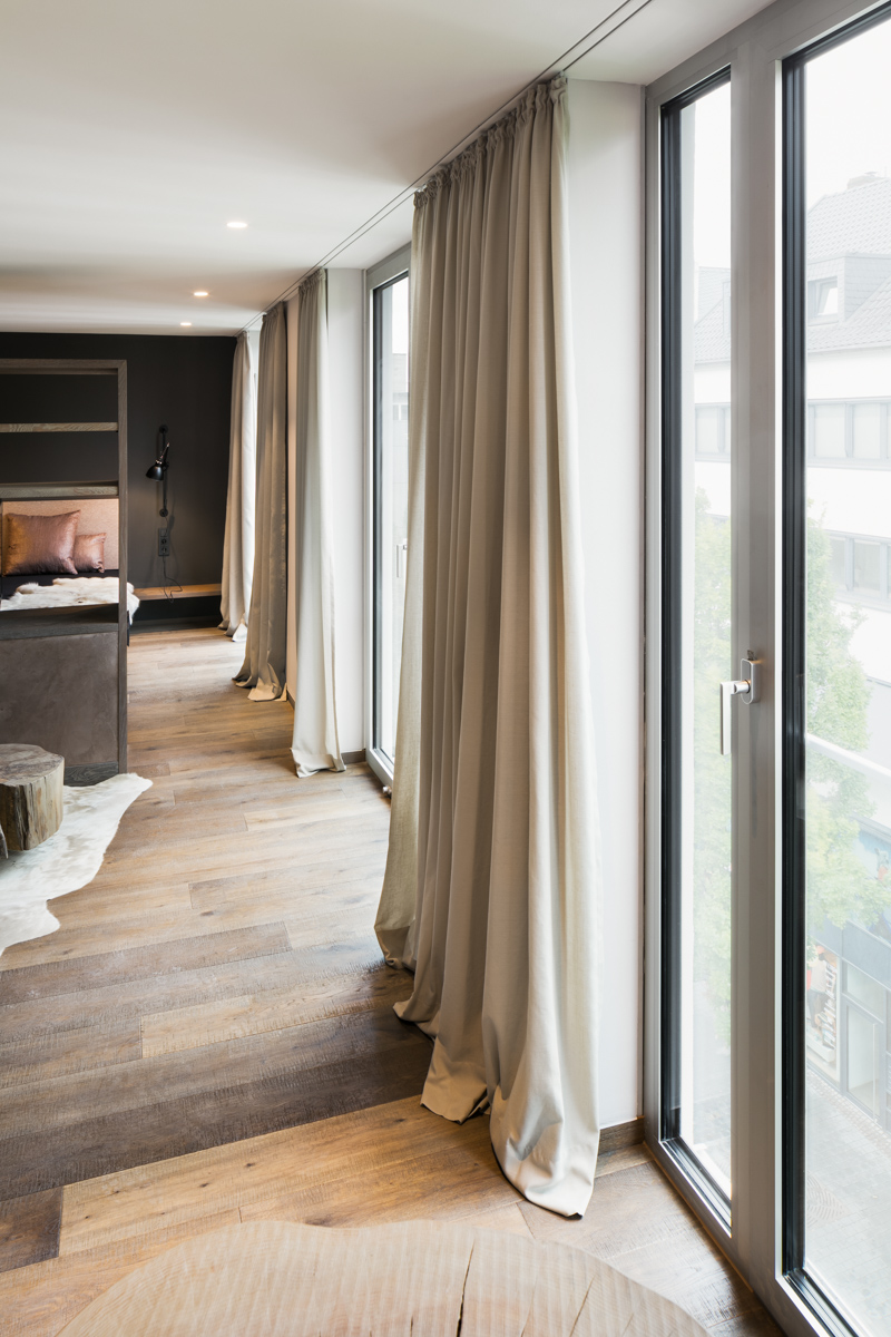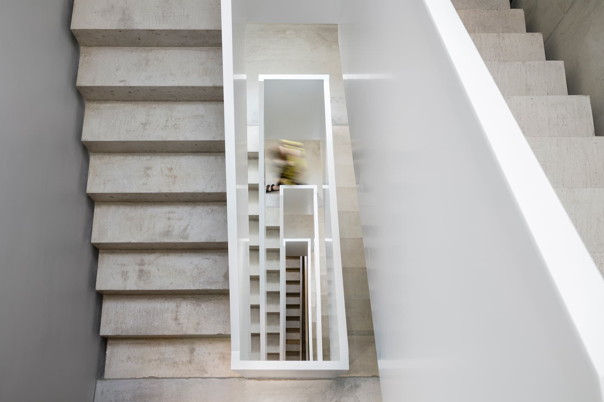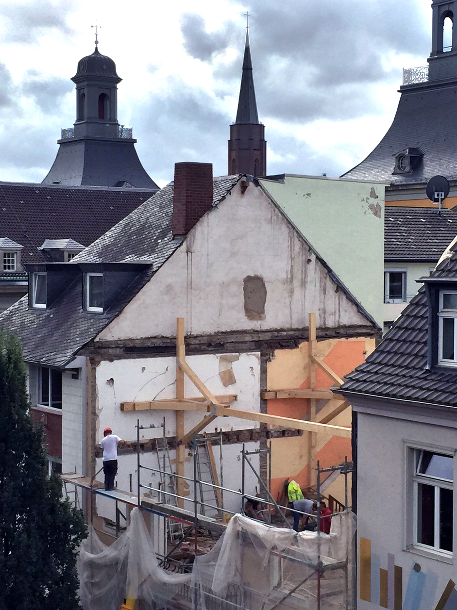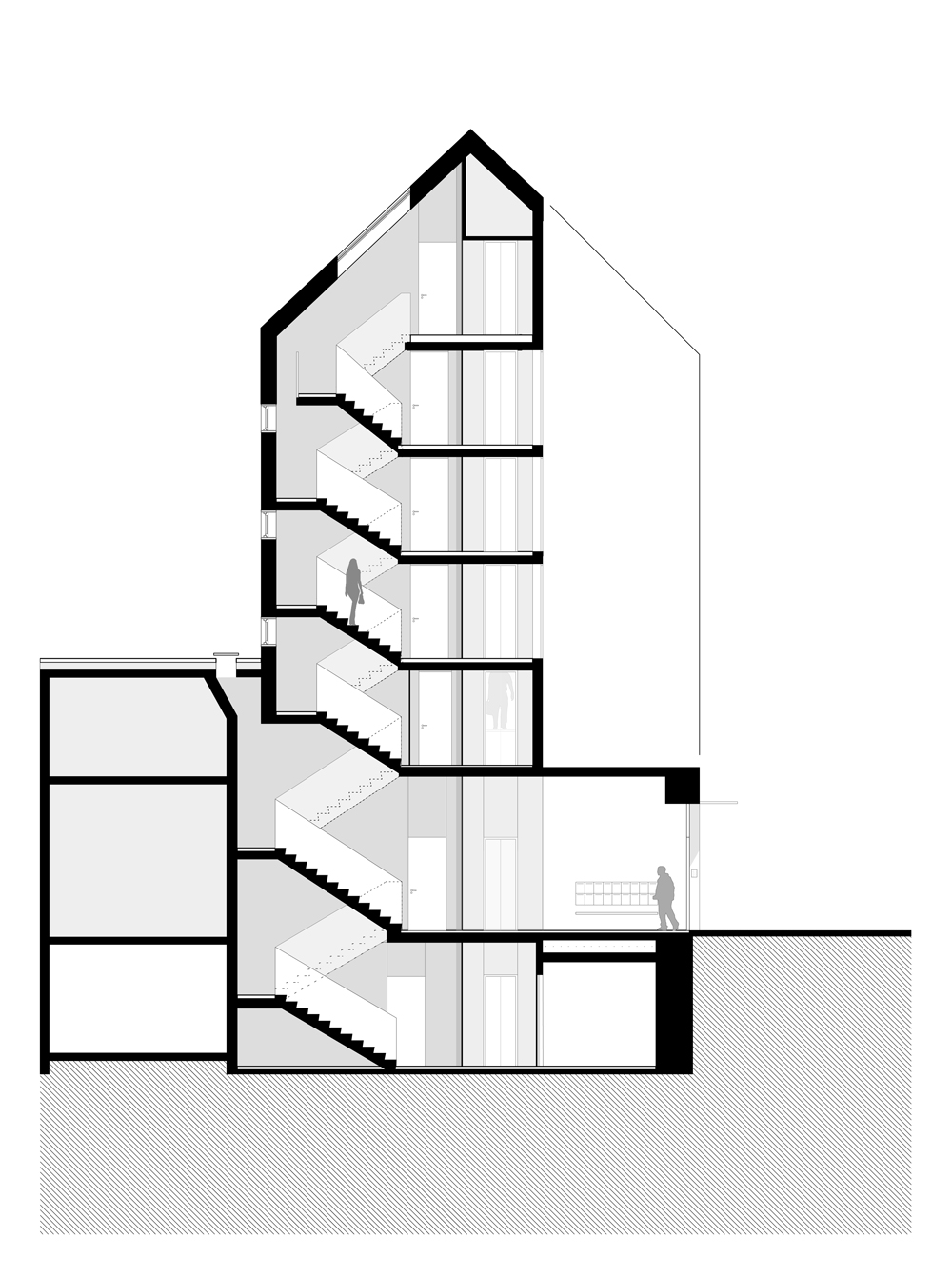 Ein vorhandenes Wohn- und Geschäftshaus in der Bonner Innenstadt wird aufgrund seiner desolaten Bausubstanz aus der Nachkriegszeit bis auf das Kellergewölbe abgebrochen und zeitgemäß verdichtet wieder aufgebaut. Neben dem großzügigen Ladenlokal im Erd- und 1. Obergeschoss entstehen moderne und spannend zonierte Appartments in den Obergeschossen. Die Appartments werden sorgfältig möbliert und zur temporären Vermietung vorgesehen. Die gelaserte Eingangstür verweist auf Charlotte von Schiller, die bis zu Ihrem Tode an diesem Ort lebte.