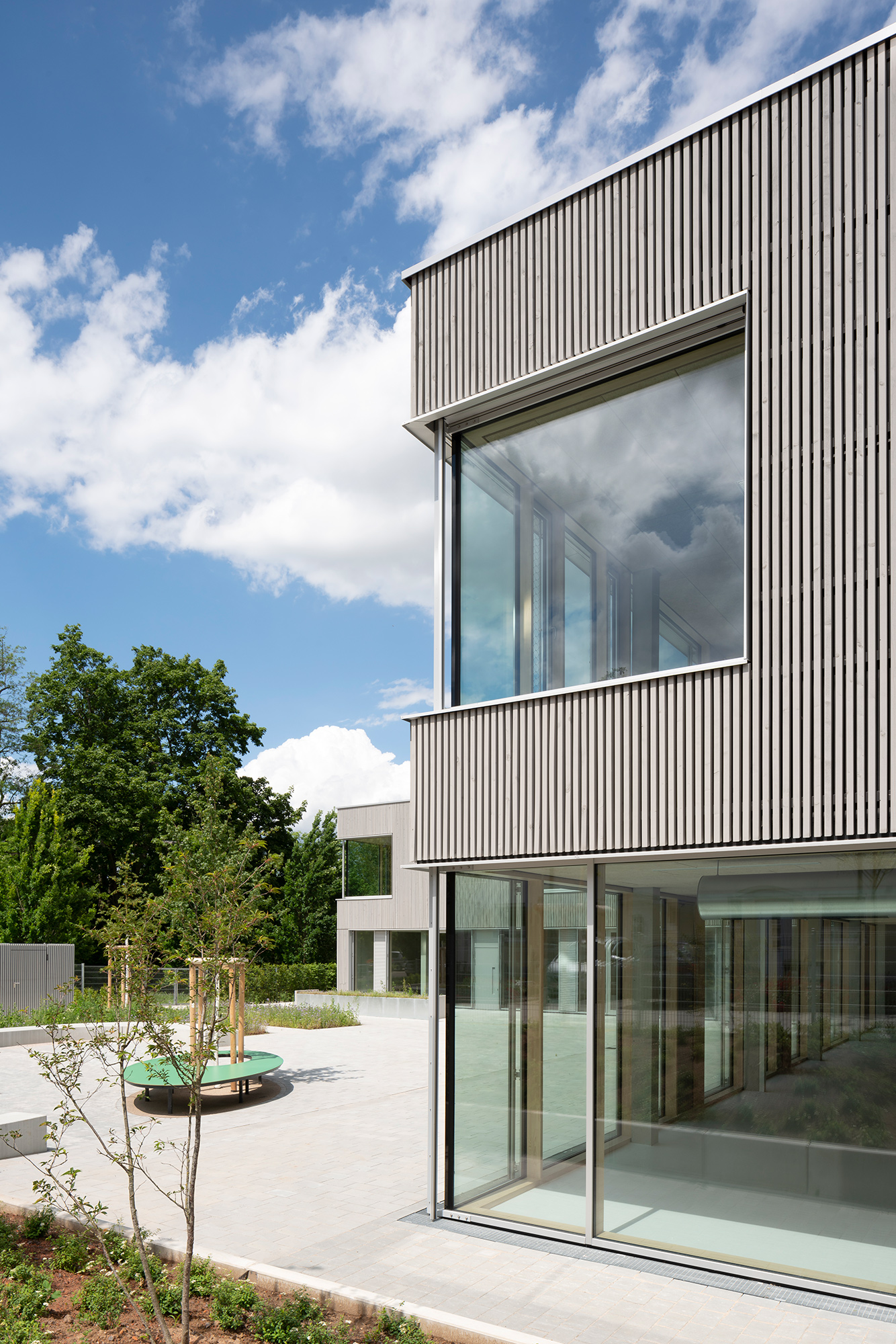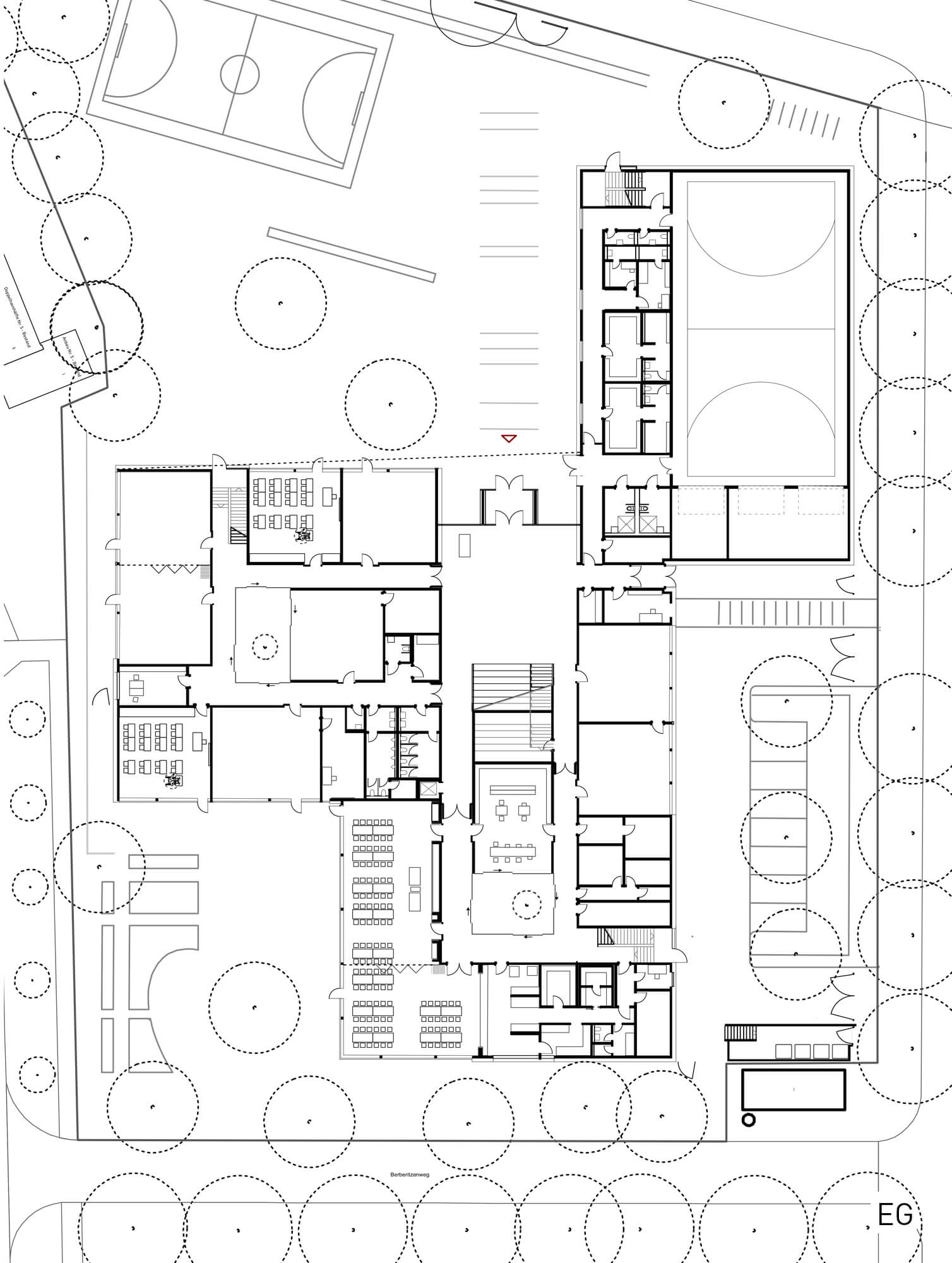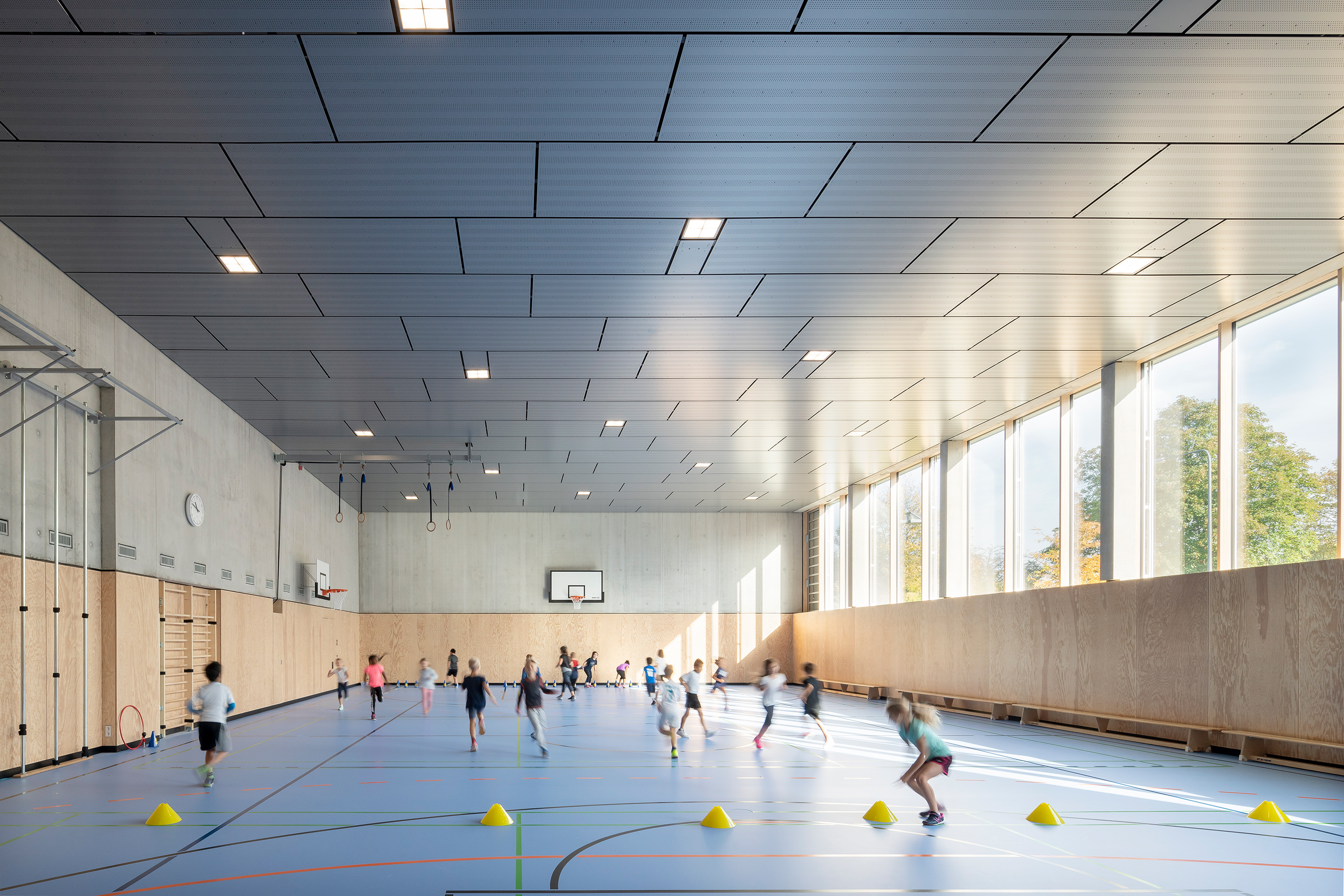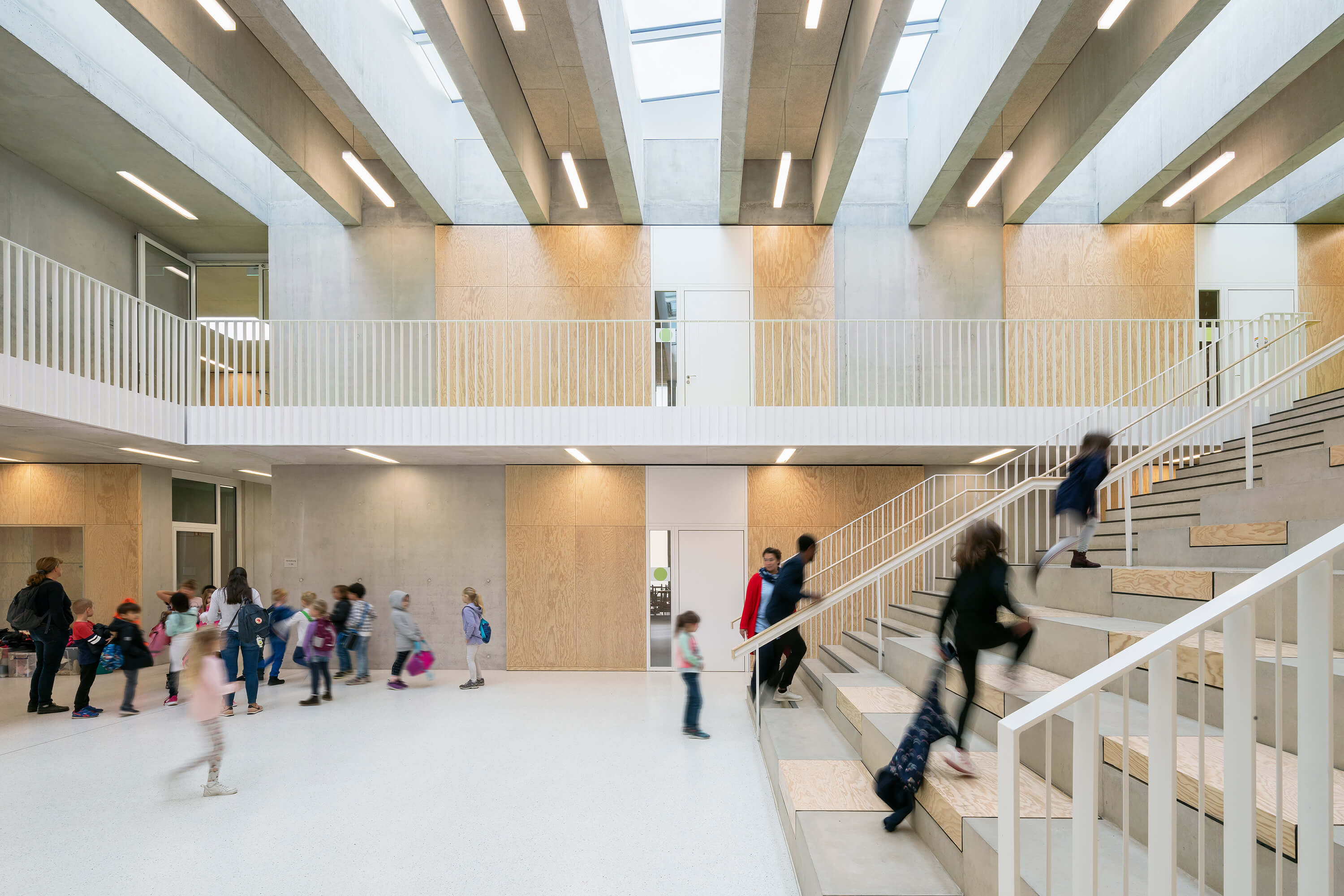 Das zweigeschossige Gebäude ist als dreizügige Grundschule mit Sporthalle für ca. 300 Schüler:innen konzipiert, bei der das Thema der Inklusion im Vordergrund steht.