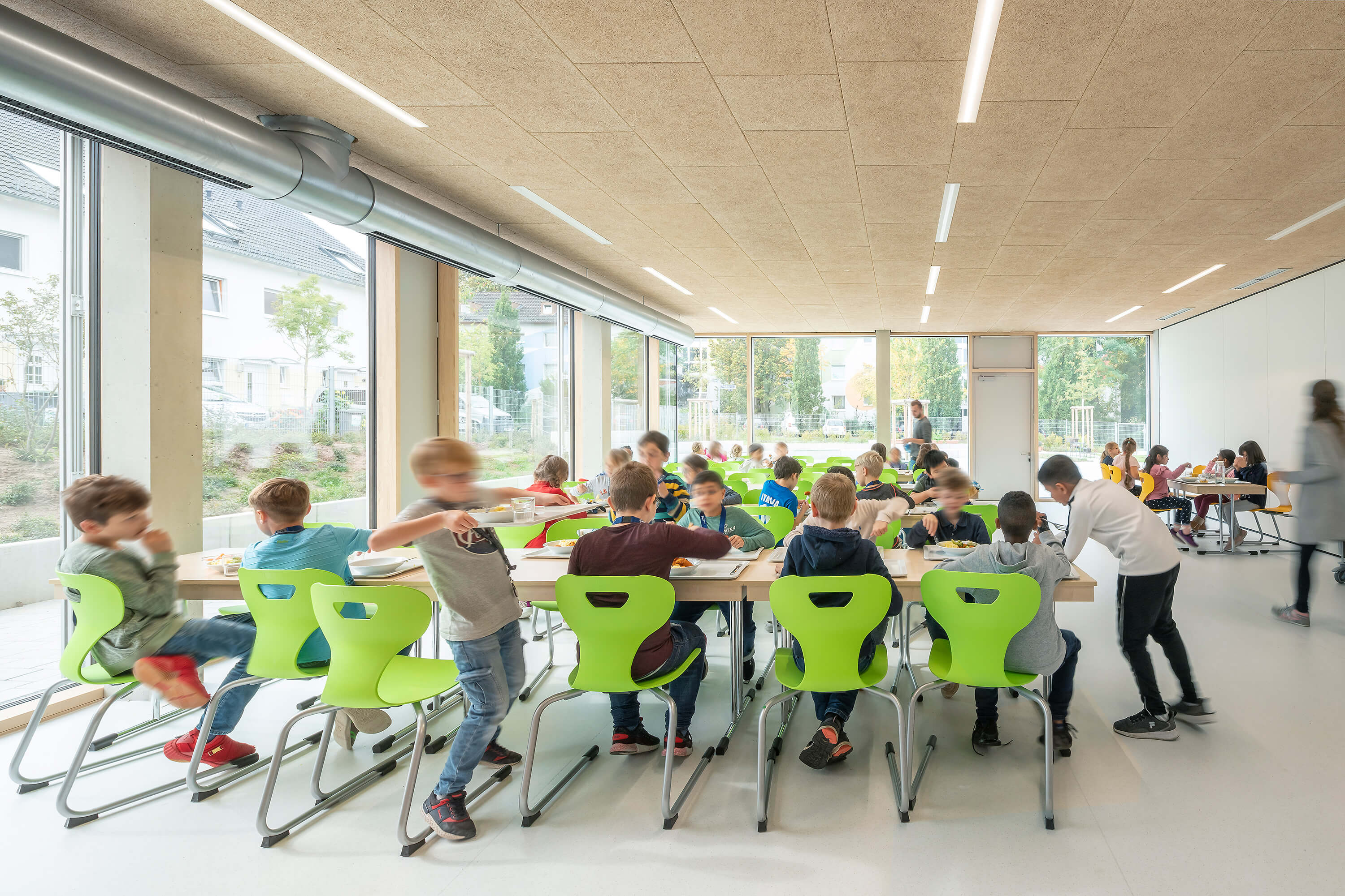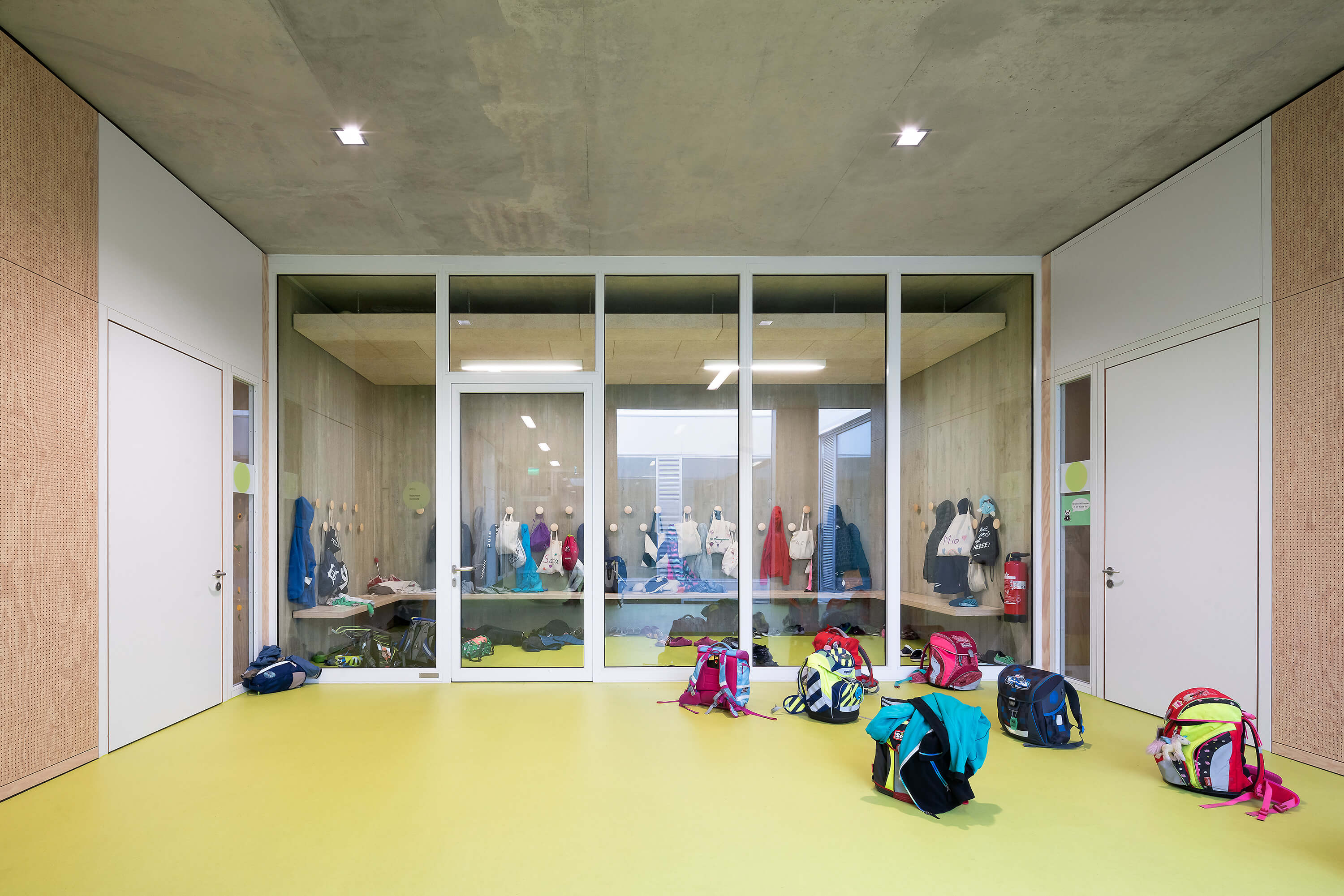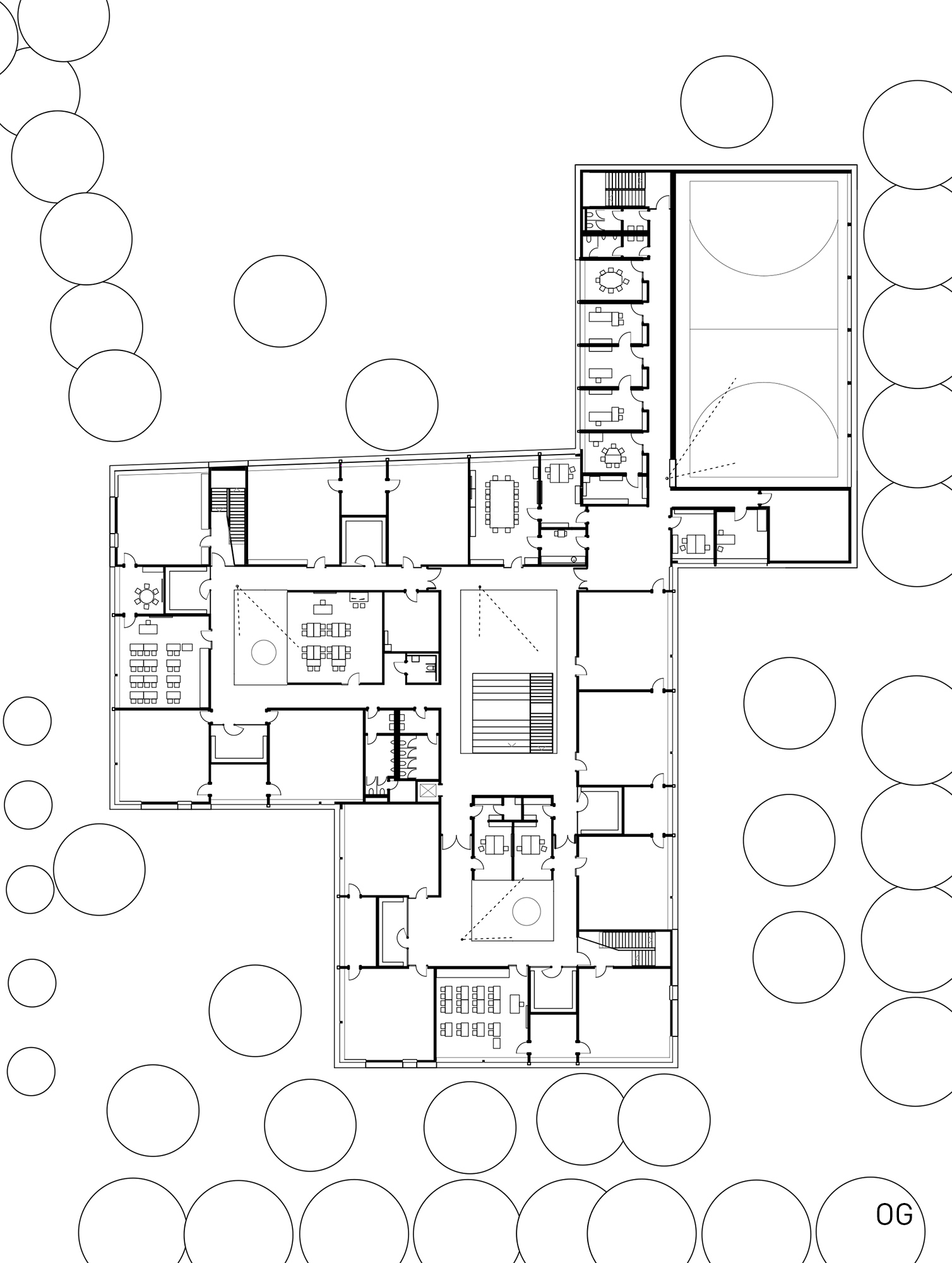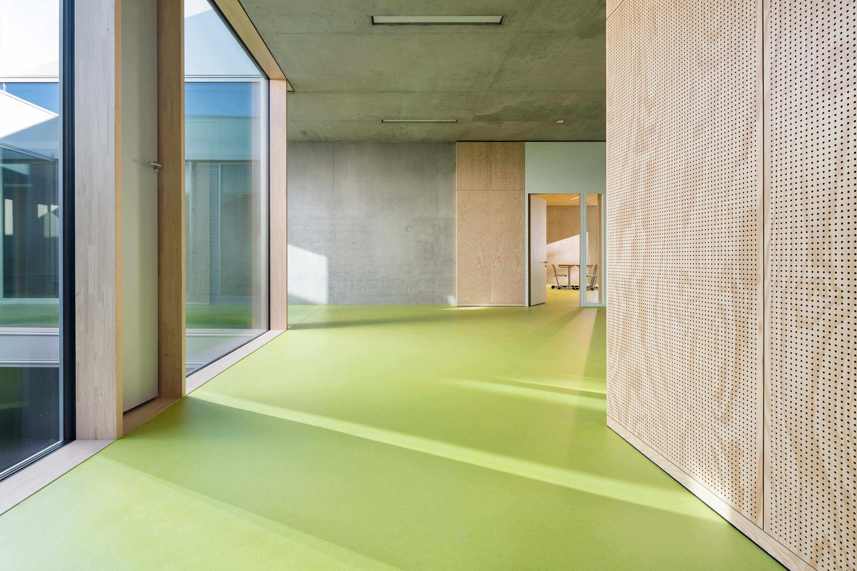 Das zweigeschossige Gebäude ist als dreizügige Grundschule mit Sporthalle für ca. 300 Schüler:innen konzipiert, bei der das Thema der Inklusion im Vordergrund steht.