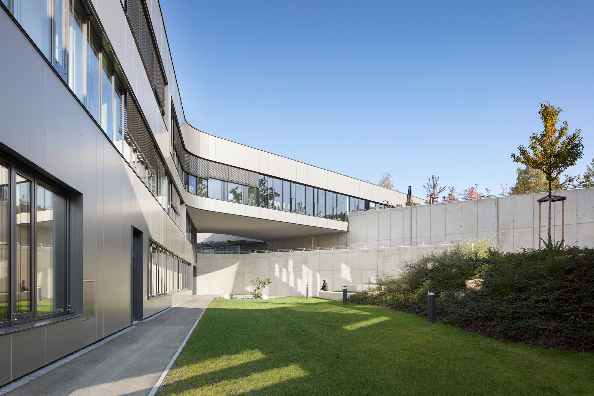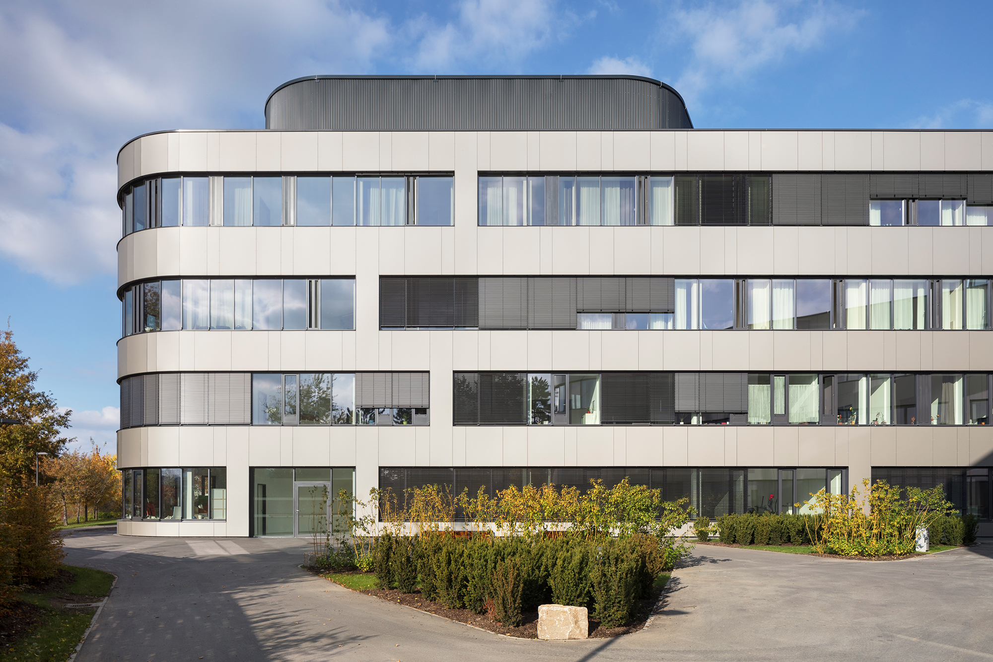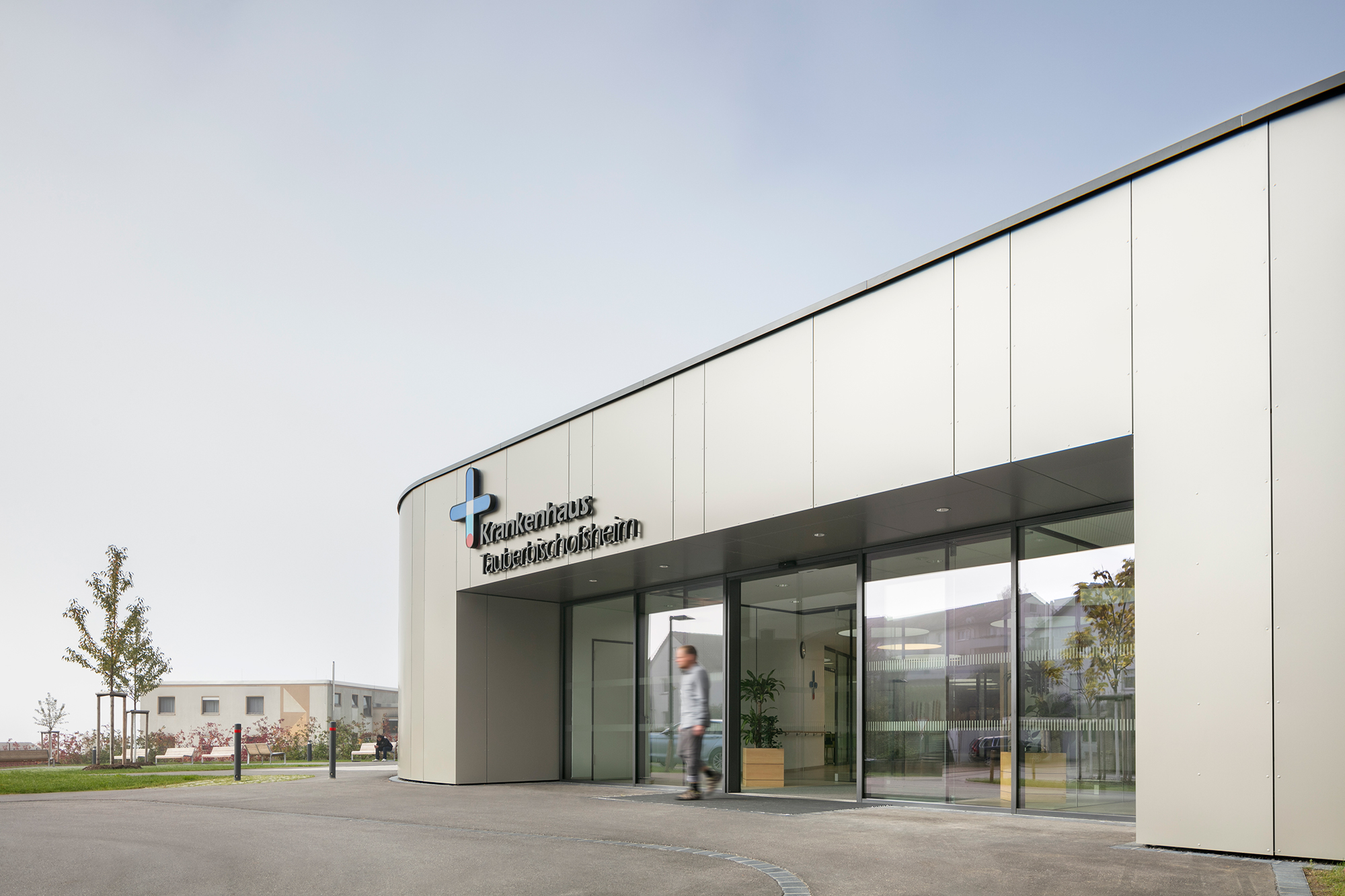Der kleeblattartige Neubau setzt architektonisch ein neues Zeichen: Die Eingangssituation des Krankenhauses Tauberbischofsheim wird neu geprägt. Die geometrische Ausrichtung ergibt sich aus der Idee, den größten Teil der Räume auf den attraktiven Talblick auszurichten. Der weich geschwungene, kompakte Baukörper ermöglicht einen geringen Fußabdruck des Gebäudes mit relativ großen, parkähnlichen Freianlagen. Die Höhenstaffelung des Neubaus vermittelt zur umgebenden Bebauung.